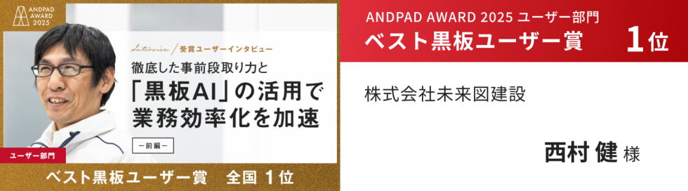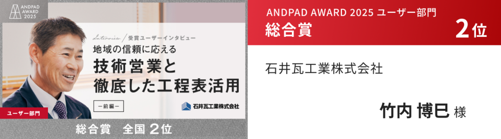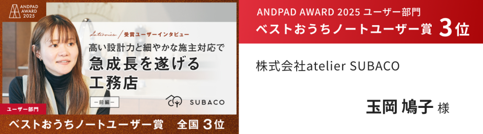 以上、ANDPAD AWARD 2025 ユーザー部門の各賞を受賞されたユーザーをご紹介しました。