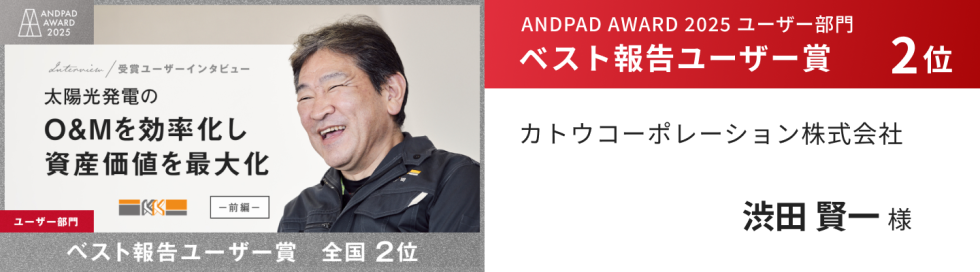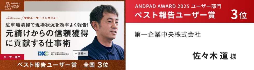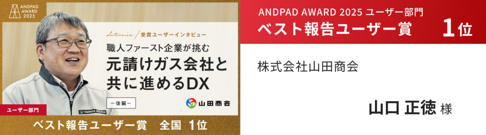ANDPADの報告を利用して、“段取り八分仕事二分” を実現するユーザーを表彰するのが、「ベスト報告ユーザー賞」です。
