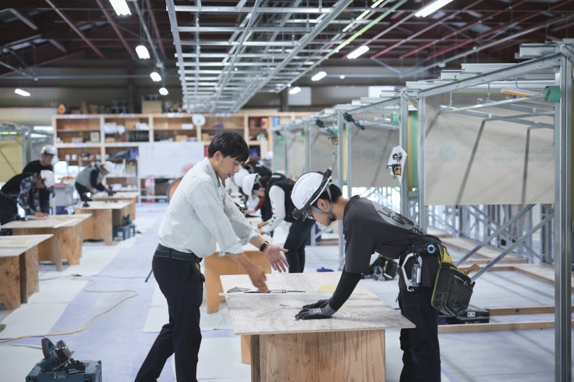 田中さん: 2025年4月、福井県永平寺町の元繊維工場を改装してTATトレーニングセンターを開校しました。TATに所属する新入社員は、トレーニングセンターで入社後の約4カ月間、内装工事や外装工事などの基礎を学んでから現場に出ることになります。