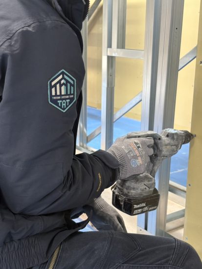 田中さん: タッセイ職友会にはピーク時には250人ほど在籍していましたが、今は約150人ほどに減少しています。また、職人の高齢化も進んでおり、10年後には現在のメンバーが半減してしまう可能性があります。そこで、若手職人の確保に向け、当社が正社員として職人を雇用し、育てていく取り組みをはじめました。それが自社職人チーム「TAT(Tassay Artisan Team)」です。TATは、タッセイ職友会と連携して、建築物の内装・外装工事を手がけます。TATの職人がカバーする範囲は、タッセイ職友会と同様に専門工事ごとに細かく分かれています。