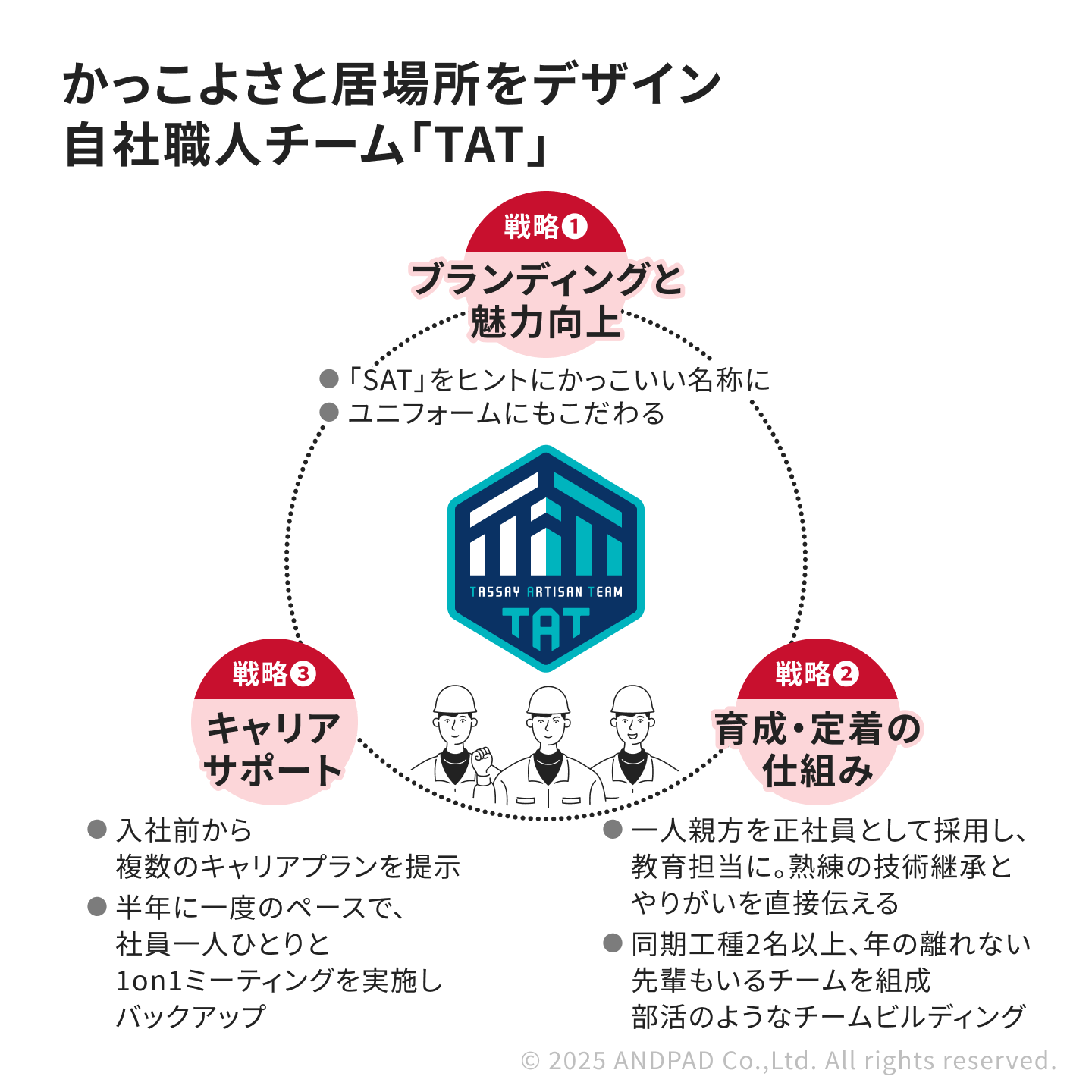 自社職人集団「TAT」を結成、部活のようなチームビルディングで定着率を向上