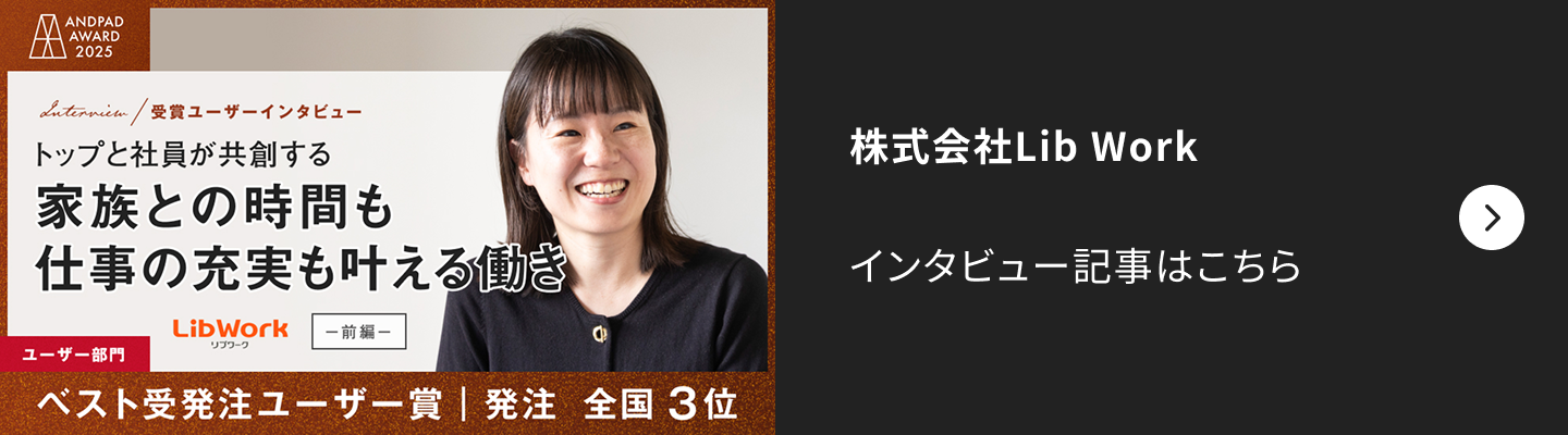 ・熊本県に本社を構えるハウスメーカーのLib Work様は、紙ベースだった受発注業務をANDPADに移行し効率化。オフィスにいなくても現場の状況や発注の進捗を確認できるようになり、テレワークを実現しています。
