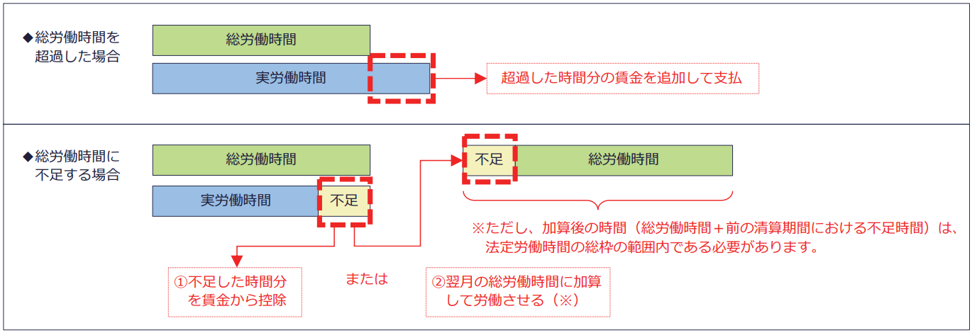 フレックスタイム制を導入した場合、清算期間における総労働時間と、実際の労働時間の過不足に応じて、賃金の清算を行う必要があります。実労働時間を正確に把握するなど、適切な労働時間の管理が欠かせません。